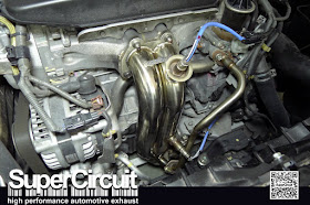 The factory stock original headers has been removed for the Toyota Vios's 2NR-FE 1.5L engine and the SUPERCIRCUIT tuned-length Headers is in place of it.